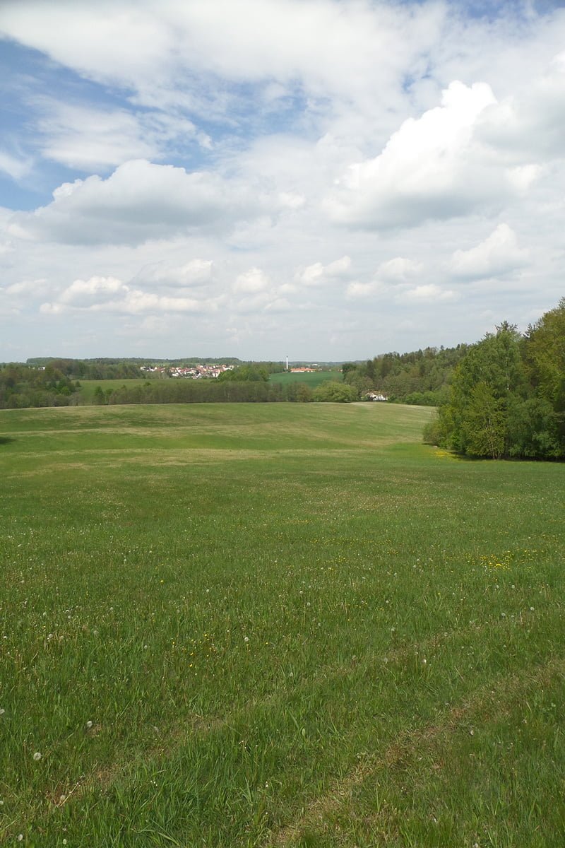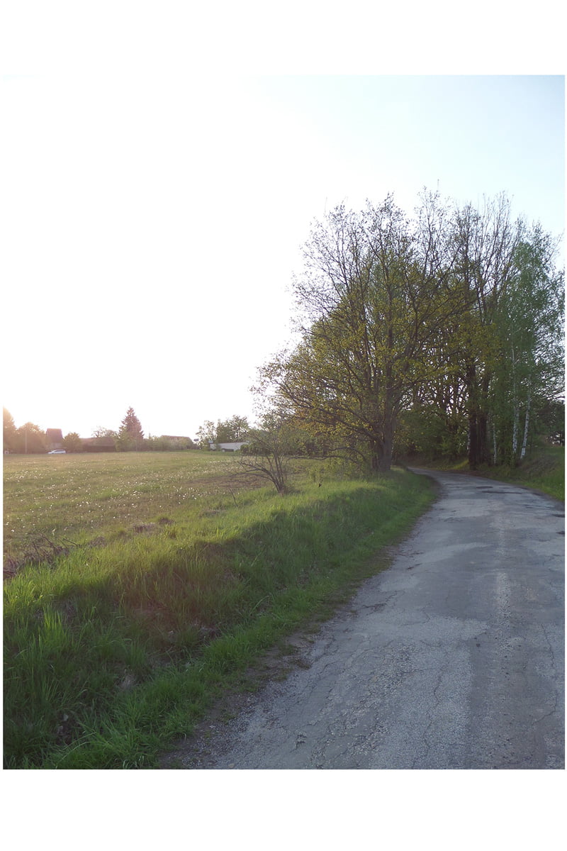 Na dalším srovnání je vidět dříve nejkratší pěšina z Trhových Svinů do Lnišť. Na skice je vidět dřevěný kříž, který roku 1808 padl. Dnes místní louku požívají jako nejkratší cestu na Buškův Hamr, pěšina již není viditelná a po chvíli se stáčí do lesa a přes můstek navazuje na naučnou stezku Trhosvinenska. Výhled na jasně viditelný kostel ze skici je zakrytý stromy. Za povšimnutí také určitě stojí, jak se změnila podoba vesnické krajiny za 80 let. Dříve bylo více malých políček, která se postupem času scelila do velkých lánů polí a luk.