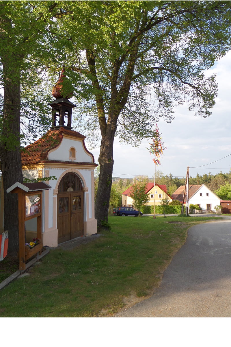 Na prvním srovnání je vidět část návsi s pozdně barokní kaplí sv. Jana Nepomuckého z 1. poloviny 19. století. Kaple i domy na návsi jsou udržované a tak se pohled za 80 let prakticky nezměnil.