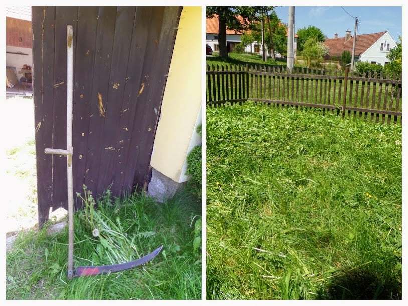 Vejminek vyklizen a bordel odvezen. Mini dvoreček a mini předzahrádka jsou prales 😯 musím je zkulturnit! Vojtovo taťka mi dal podrobnou instruktáž, jak pracovat s kosou. Ano, pro ty co mě znáte, s kosou. Jediné co mi utkvělo v paměti bylo, že nemám špíčku tlačit nahoru. To jsem v plném znění doporučení splnila, ale ta špička pitomá se neustále zapichovala do země. Ale co, říkala jsem si, že tak malou zahrádku dám kosou jedna dvě a pak uhladím sekačkou. Omyl! Velký omyl! Mé inženýrské schopnosti a můj metrpadesát jsou na to prostě nedostačující. Byla to hrozná fuška, zpocená jsem byla na místech, kde to snad ani z biologického hlediska není možné. A sekačka?! Taky žádná hitparáda. Krtek tam asi pravděpodobně není, ale terén má hrboly, jako by jich tam bylo milion. Výsledkem toho všeho byl můj pocit absolutního vyhoření. Kosu ani sekačku jsem si nepodmanila a skláním se před nimi, ale nevzdám to, já je dám, mrchy dvě! Jednou… Snad…